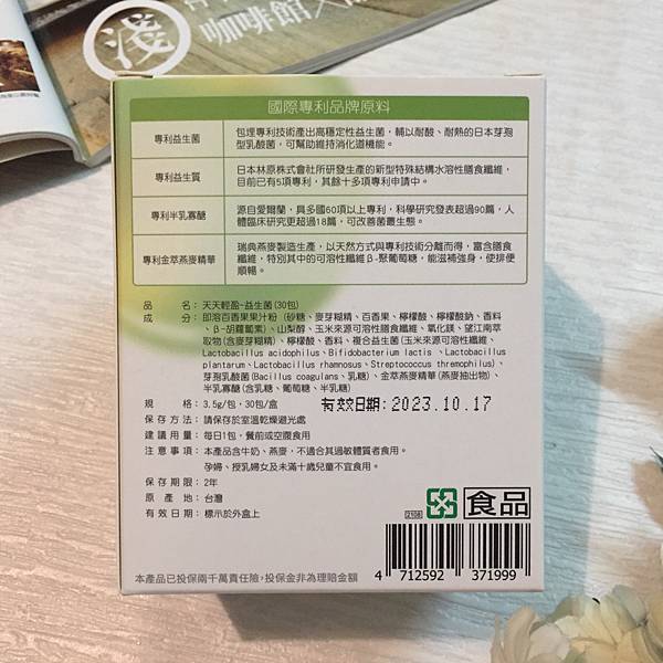 天天輕盈益生菌含有乳糖以及燕麥,對於牛奶、燕麥過敏者要避免食用。