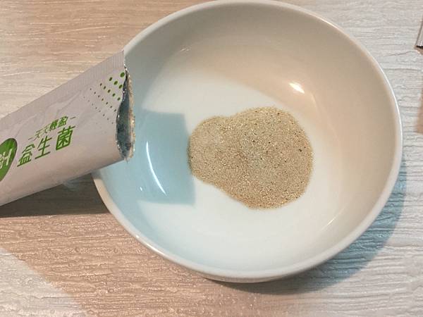天天輕盈益生菌的粉末狀呈現淡淡的黃色,