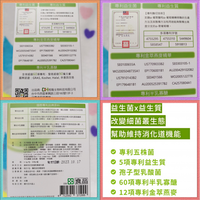 家裡的益生菌剛好吃完,補貨時剛好發現在官網獨賣的天天輕盈益生菌內含日本專利益生質,有六株專利益生菌與60項專利半乳寡醣和12項專利金萃燕麥,四大成份聯手,益生菌x益生質,幫助維持消化道機能,完全符合全家人的期待。