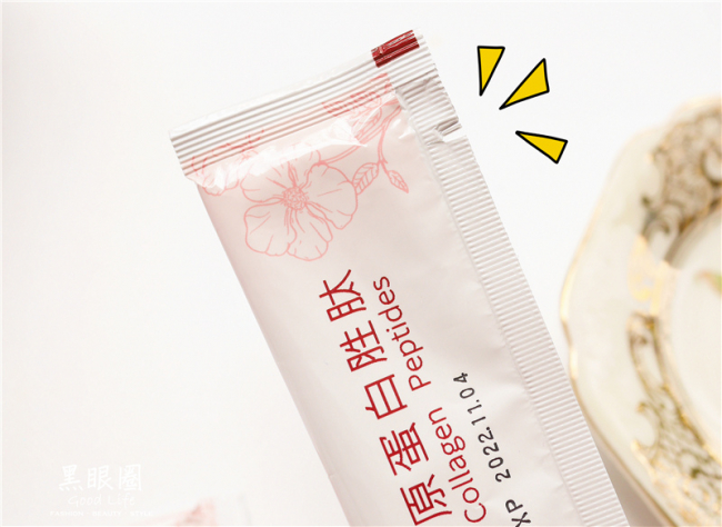 每一包秒凍齡極致膠原蛋白胜肽都有切口設計,撕開即可食用補充