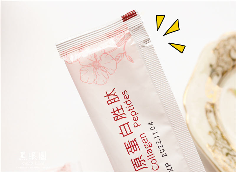 每一包秒凍齡極致膠原蛋白胜肽都有切口設計,撕開即可食用補充