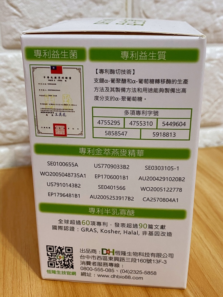 並添加擁有60項專利半乳寡醣 & 12項專利金萃燕麥